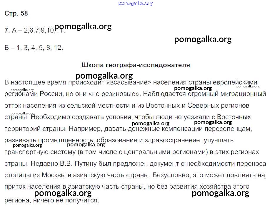 Готовые ответы - География 8 класс рабочая тетрадь Пятунин В.Б. - часть 2. страница 58
