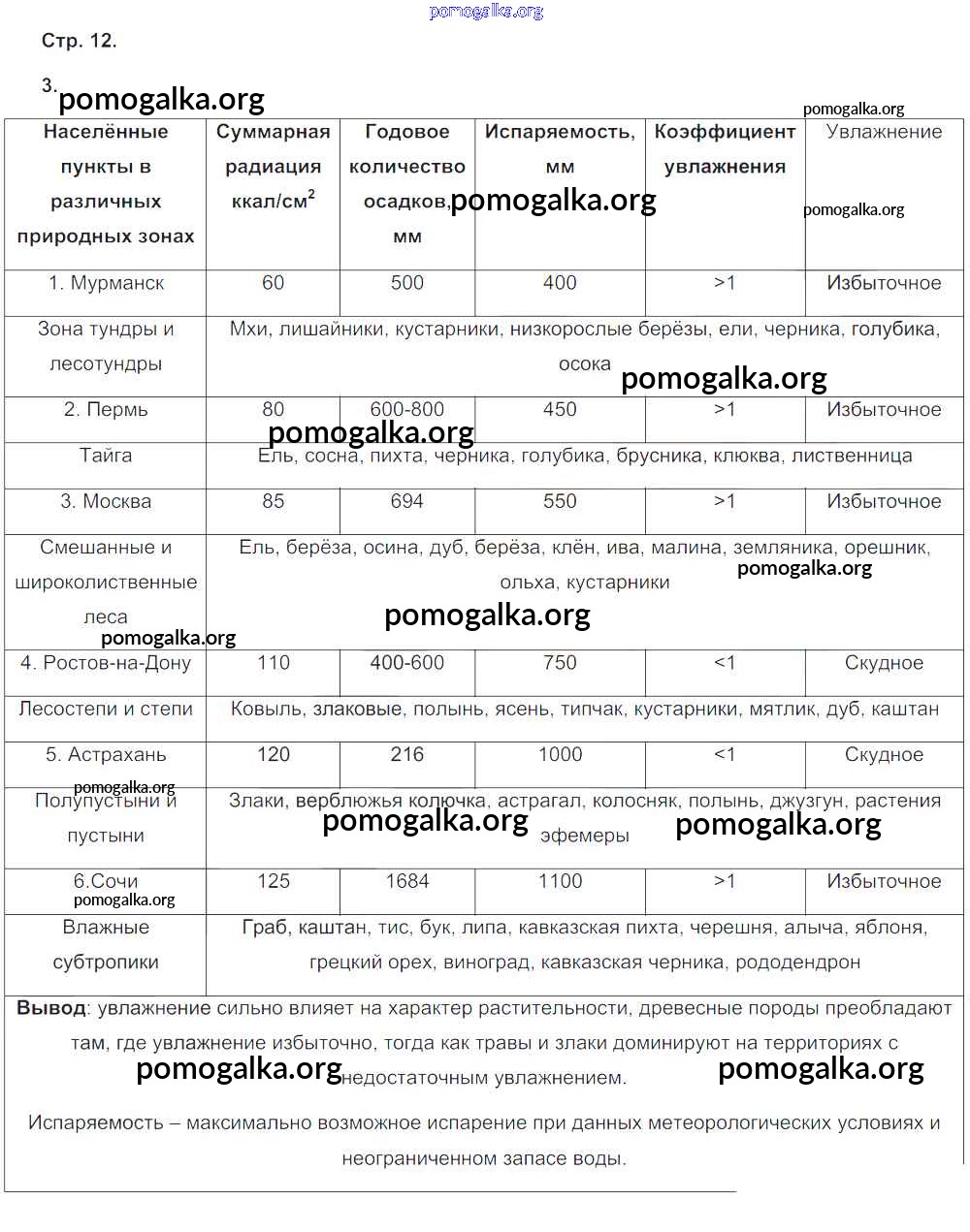 Готовые ответы - География 8 класс рабочая тетрадь с контурными картами Сиротин В.И. - страница 12