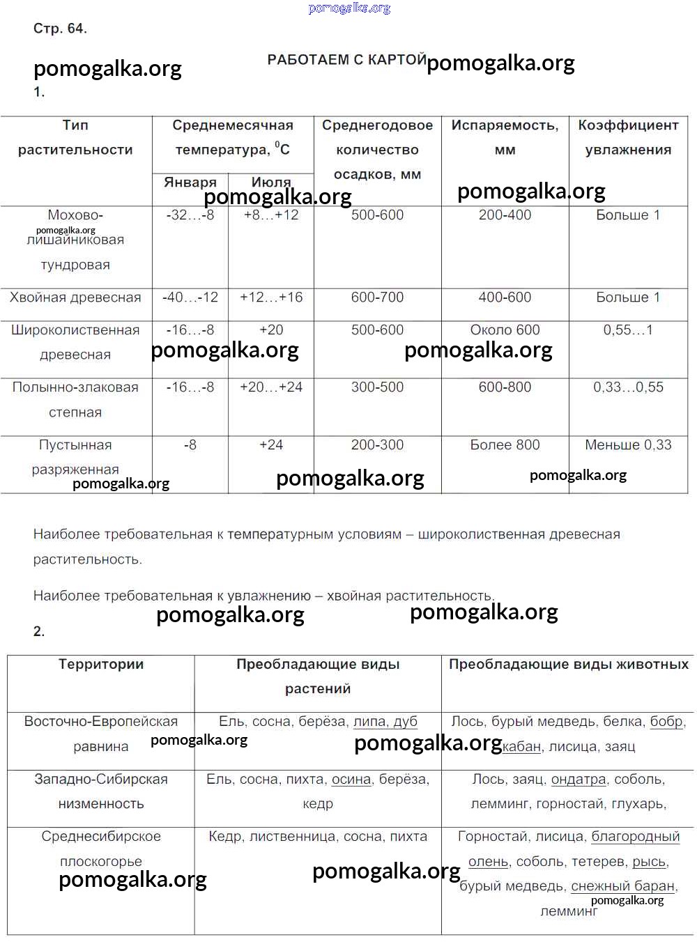 Готовые ответы - География 8 класс тетрадь-тренажёр Ольховая Н.В. - страница 64