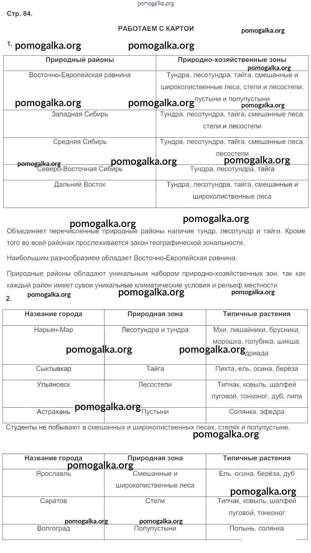 Готовые ответы - География 8 класс тетрадь-тренажёр Ольховая Н.В. - страница 84