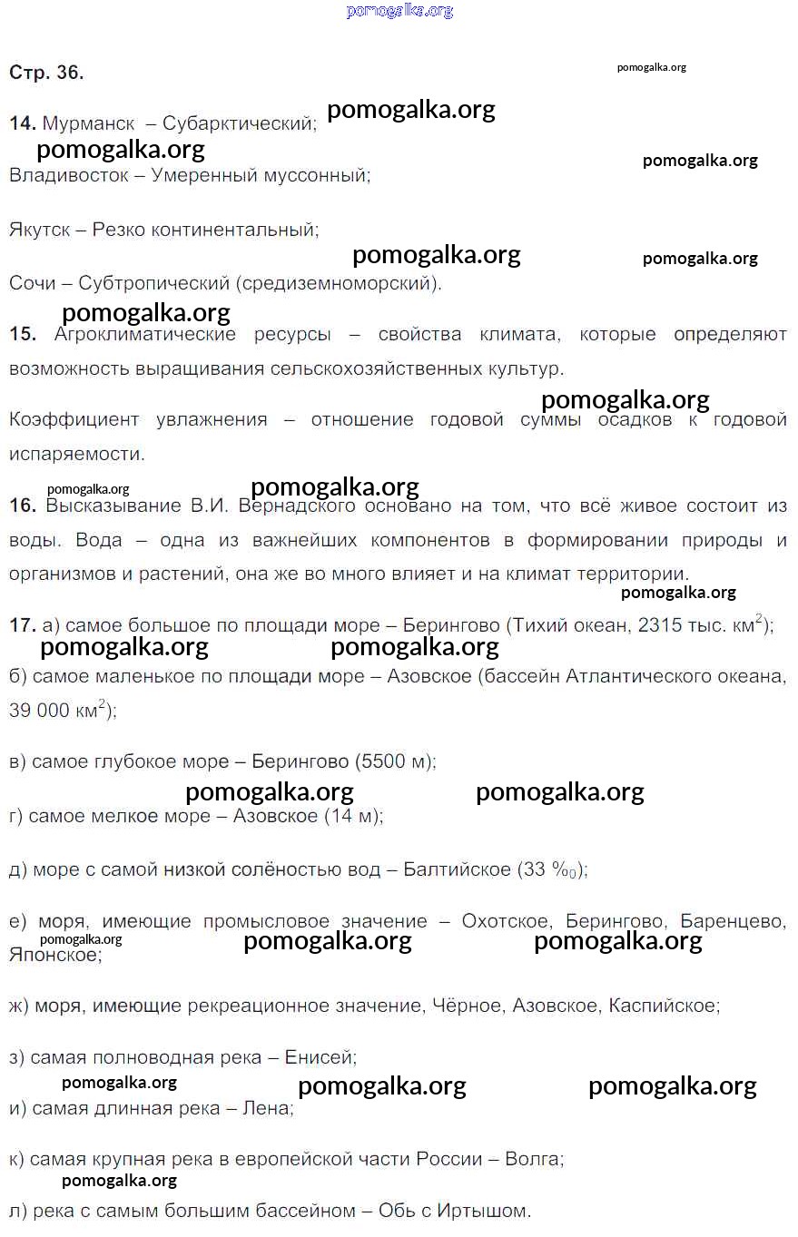 Готовые ответы - География 8 класс мой тренажёр Николина В.В. - страница 36