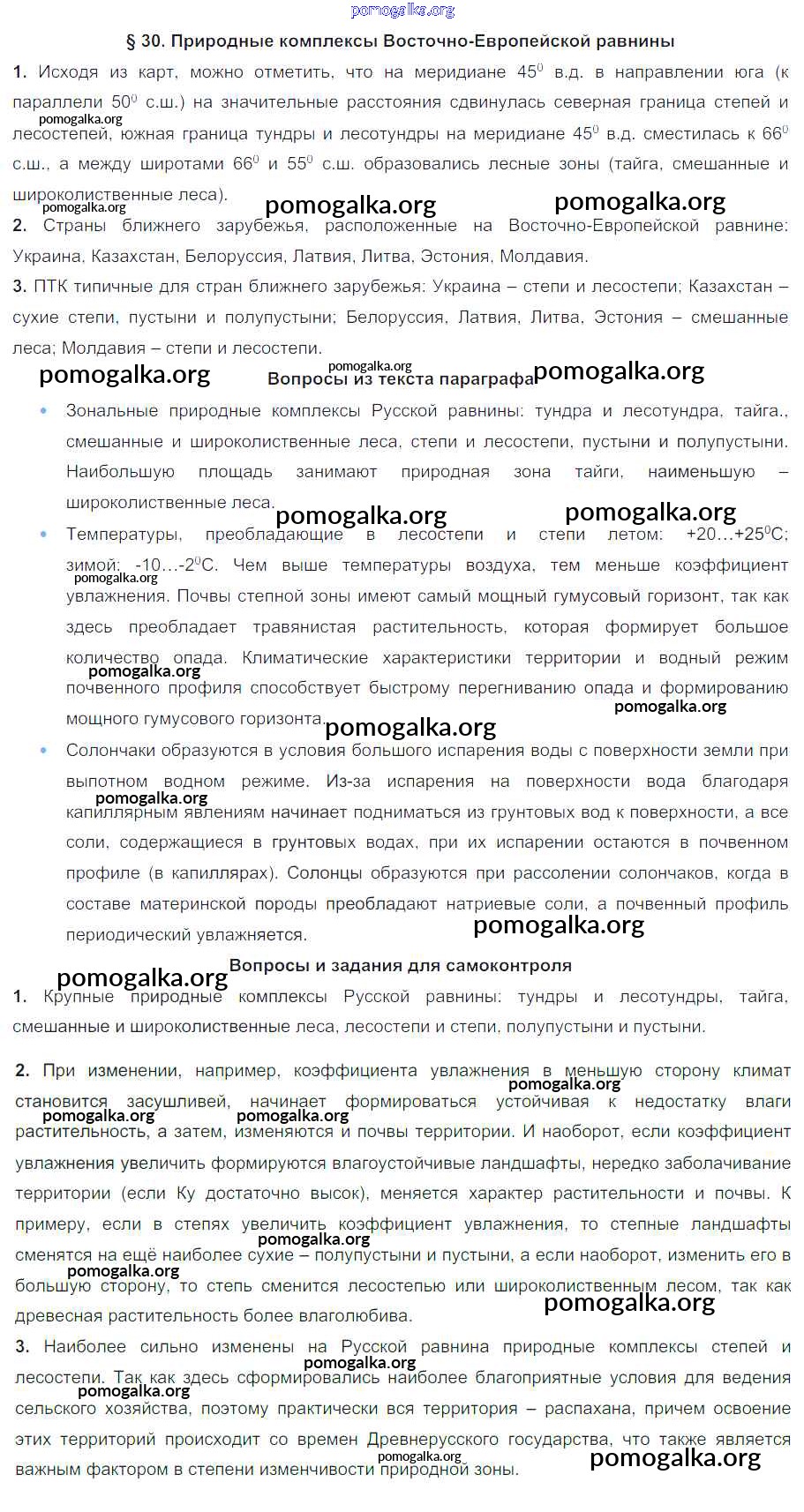 Готовые ответы - География 8 класс Природа Баринова И.И. - параграф 30