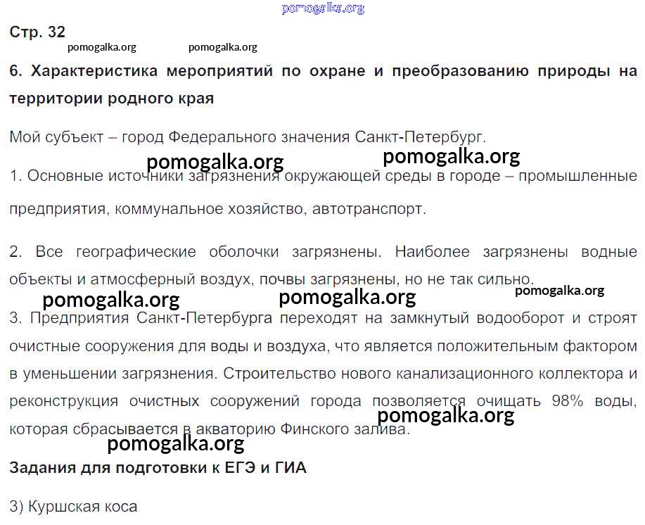 Готовые ответы - География России. Население и хозяйство 9 класс Рабочая тетрадь с контурными картами Сиротин В.И. - страница 32