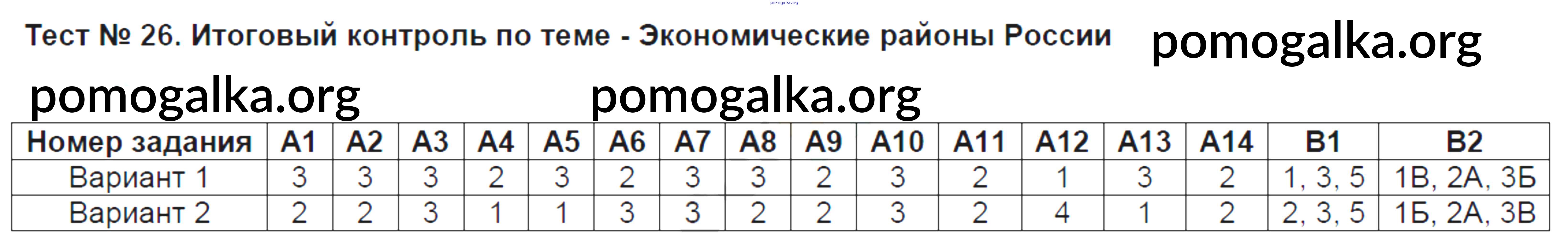 Готовые ответы - География 9 класс контрольно-измерительные материалы Жижина Е.А. - тест 26