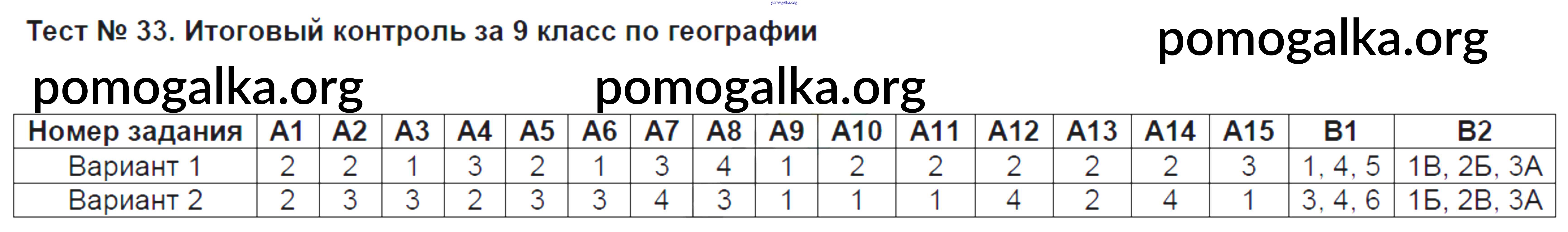 Готовые ответы - География 9 класс контрольно-измерительные материалы Жижина Е.А. - тест 33