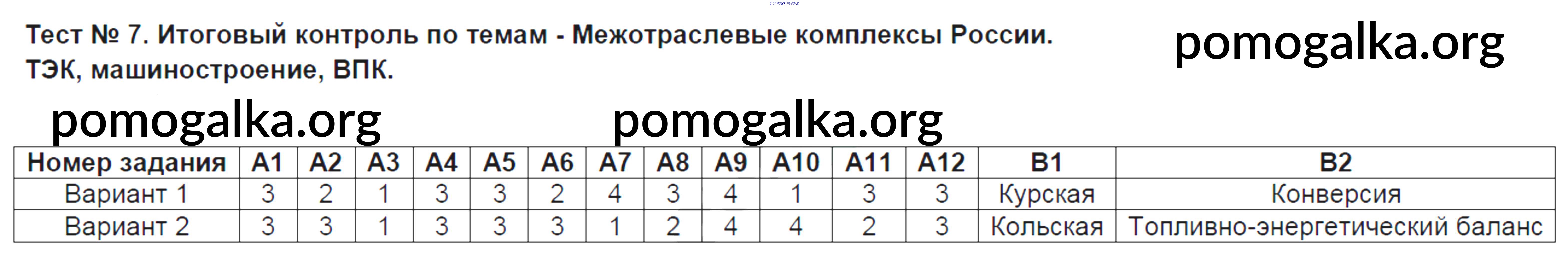 Готовые ответы - География 9 класс контрольно-измерительные материалы Жижина Е.А. - тест 7