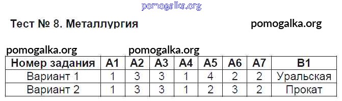 Готовые ответы - География 9 класс контрольно-измерительные материалы Жижина Е.А. - тест 8