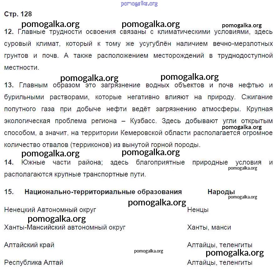 Готовые ответы - География России 9 класс рабочая тетрадь Баринова И.И. (к уч. Дронова) - страница 128