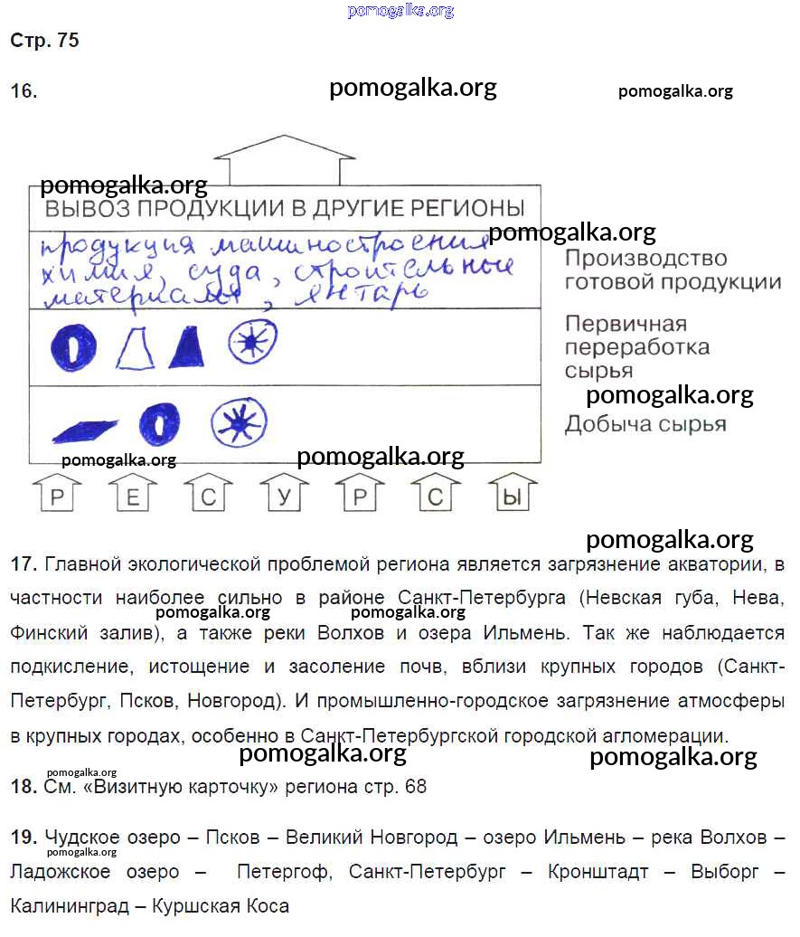 Готовые ответы - География России 9 класс рабочая тетрадь Баринова И.И. (к уч. Дронова) - страница 75