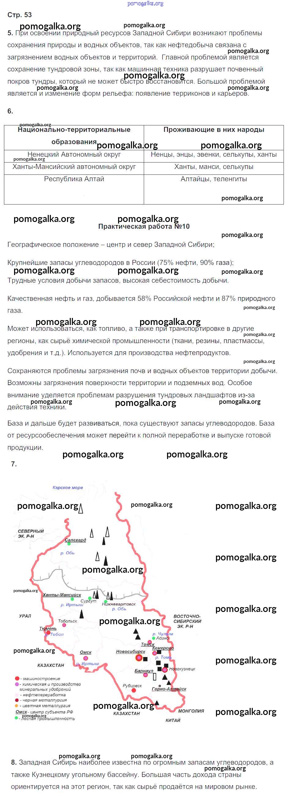 Готовые ответы - География 9 класс Рабочая тетрадь с комплектом контурных карт Баринова И.И. - страница 53