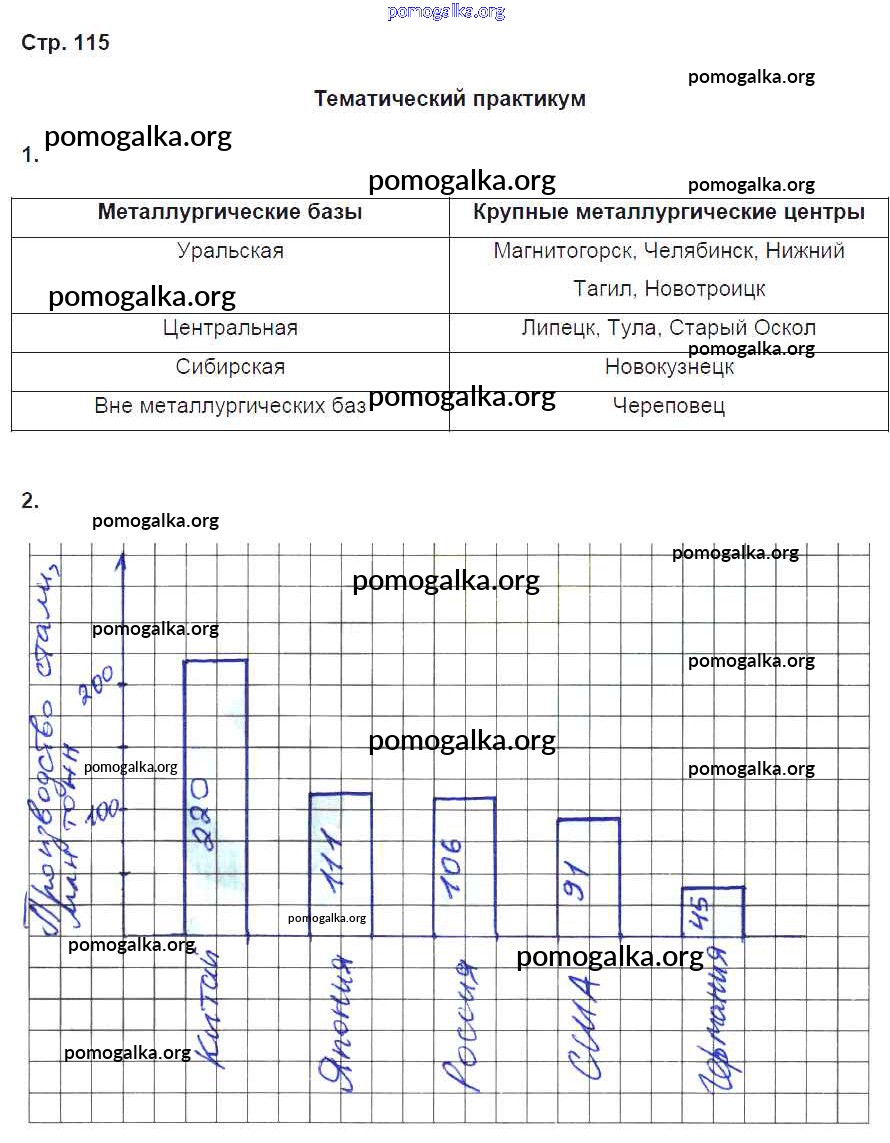 Готовые ответы - География 9 класс Рабочая тетрадь Домогацких Е.М. (к уч. Домогацких) - часть 1. страница 115