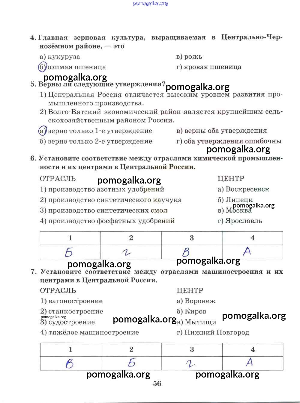 Готовые ответы - География 9 класс Рабочая тетрадь Домогацких Е.М. (к уч. Домогацких) - часть 1. страница 56