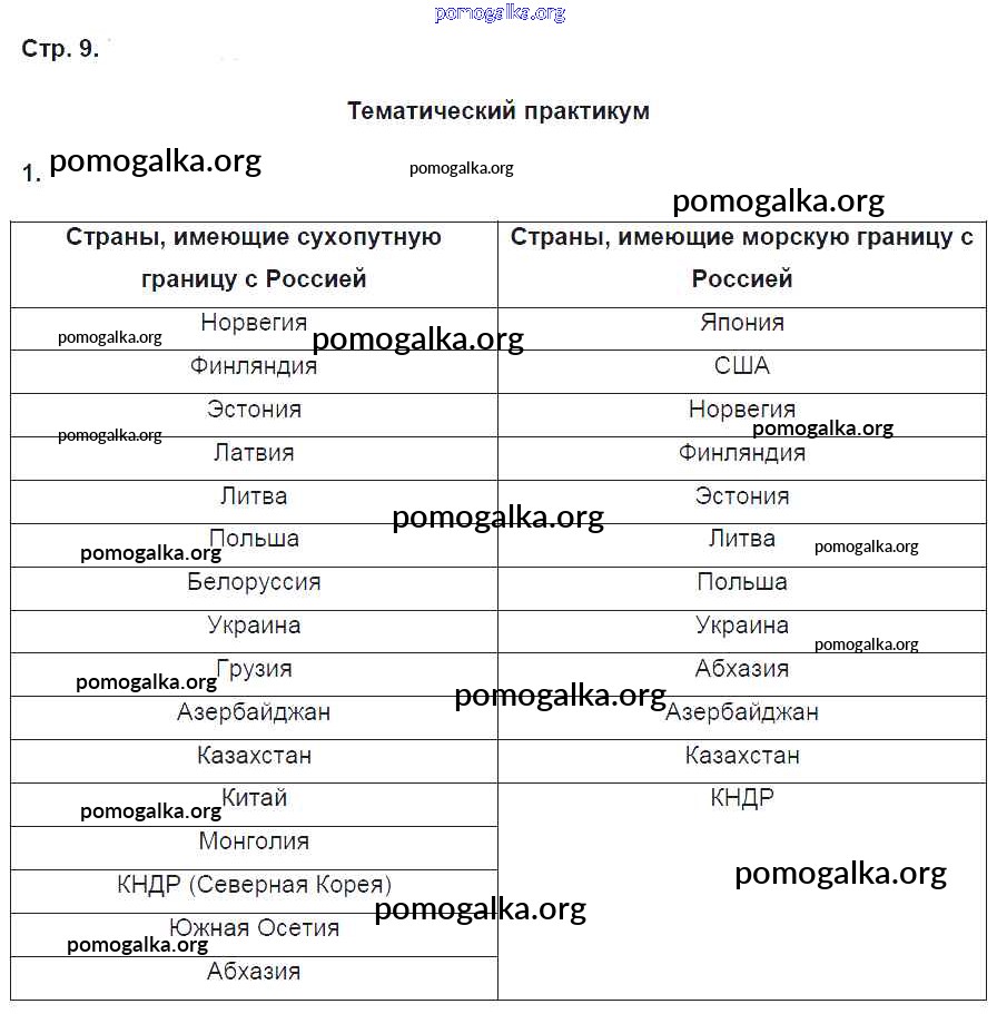 Готовые ответы - География 9 класс Рабочая тетрадь Домогацких Е.М. (к уч. Домогацких) - часть 1. страница 9