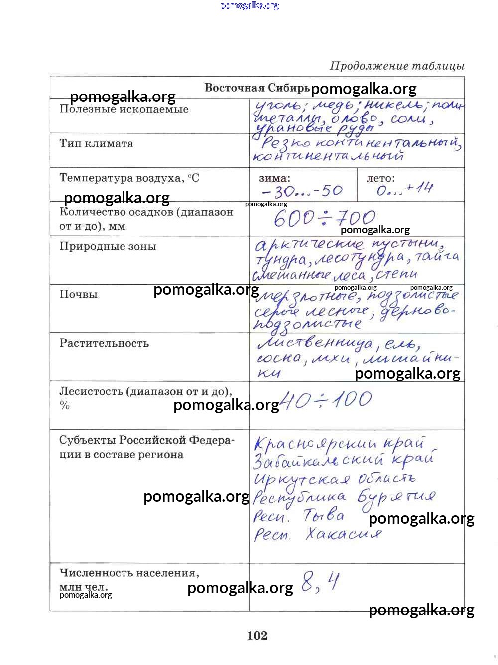 Готовые ответы - География 9 класс Рабочая тетрадь Домогацких Е.М. (к уч. Домогацких) - часть 2. страница 102