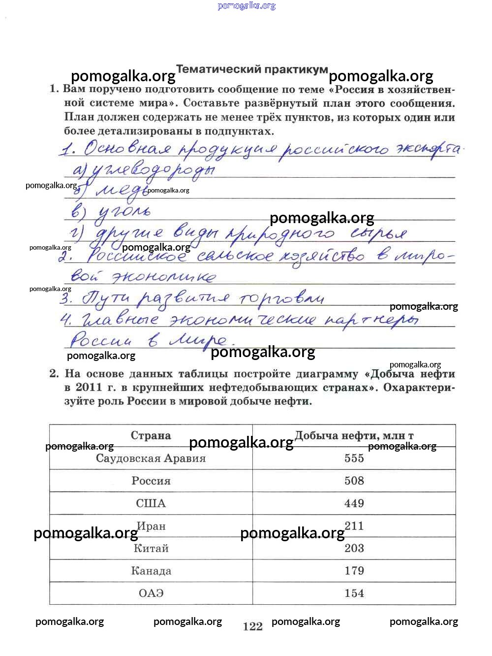 Готовые ответы - География 9 класс Рабочая тетрадь Домогацких Е.М. (к уч. Домогацких) - часть 2. страница 122