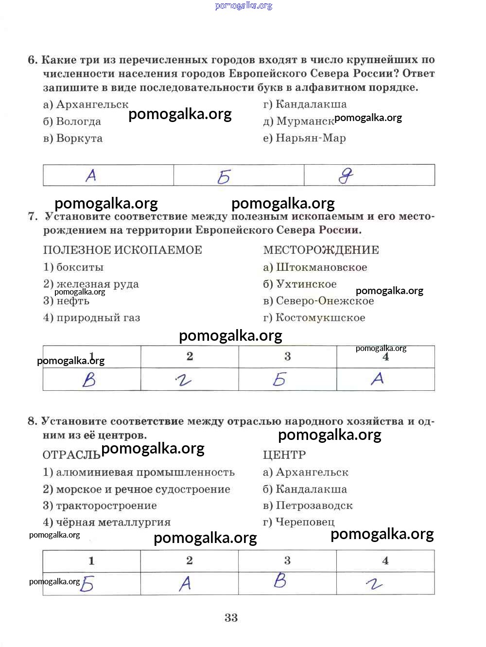 Готовые ответы - География 9 класс Рабочая тетрадь Домогацких Е.М. (к уч. Домогацких) - часть 2. страница 33