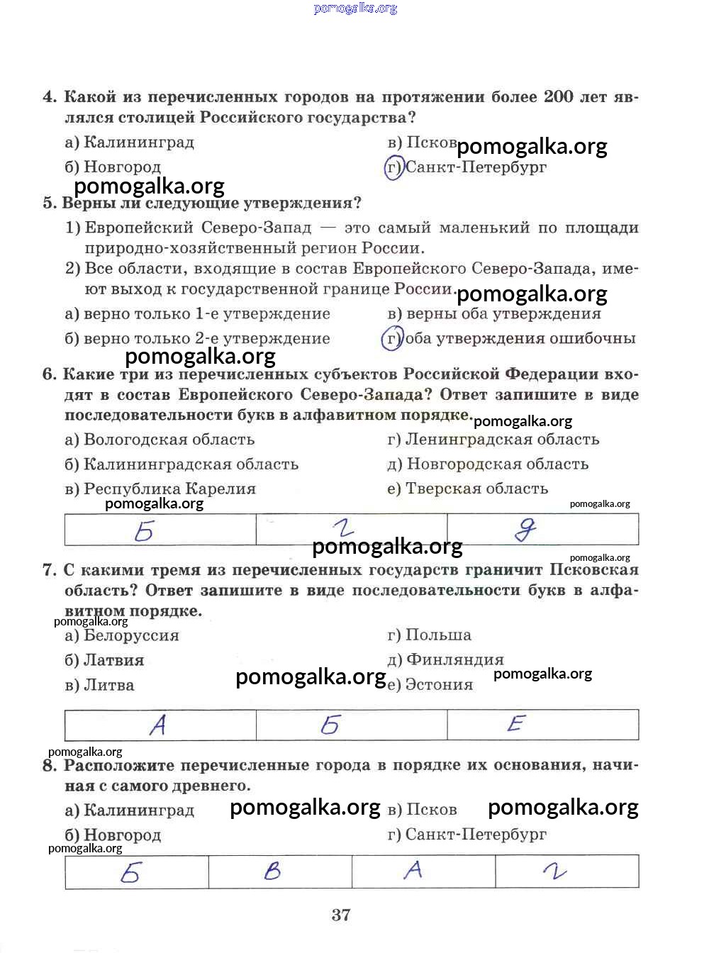 Готовые ответы - География 9 класс Рабочая тетрадь Домогацких Е.М. (к уч. Домогацких) - часть 2. страница 37