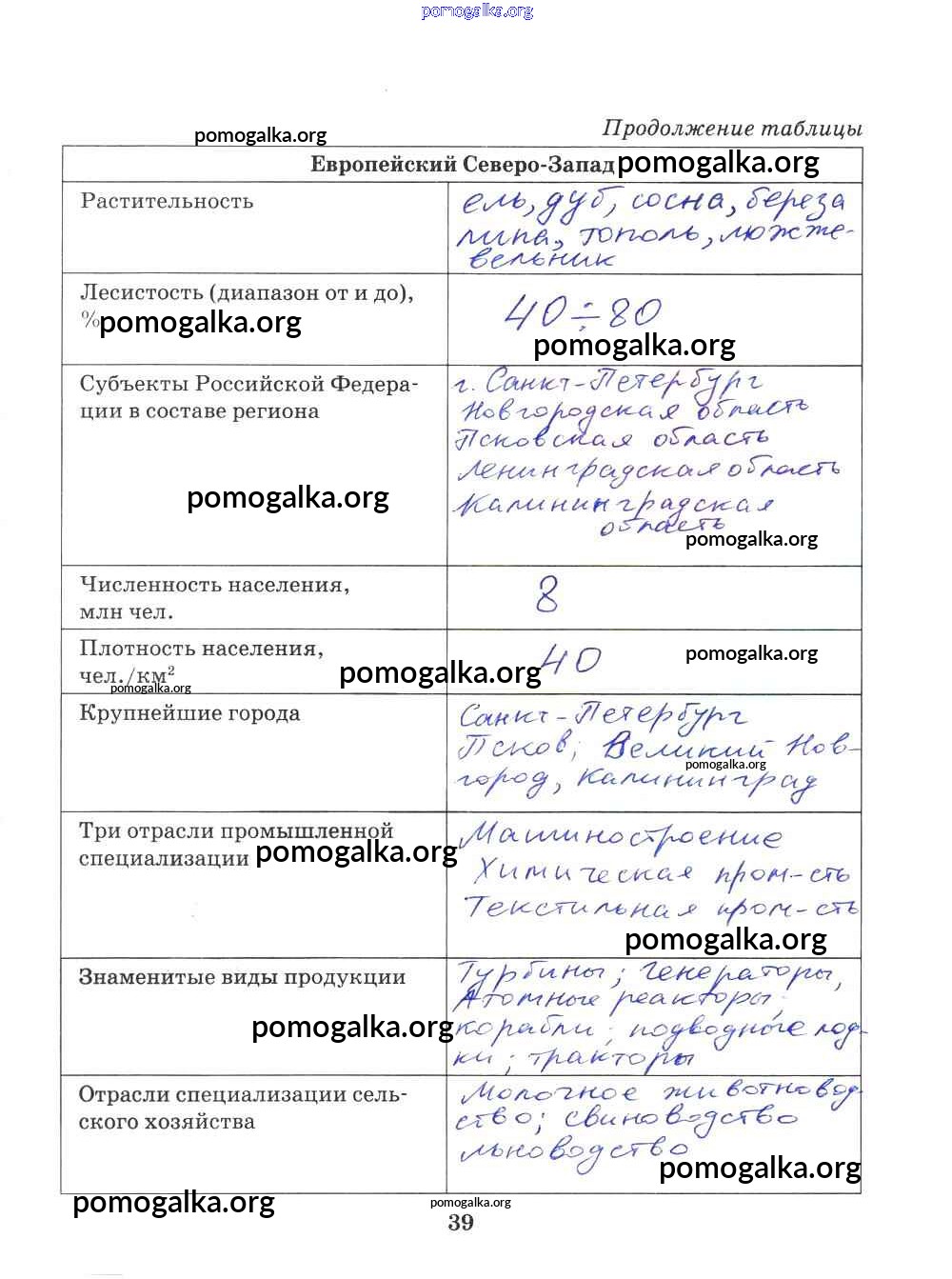 Готовые ответы - География 9 класс Рабочая тетрадь Домогацких Е.М. (к уч. Домогацких) - часть 2. страница 39