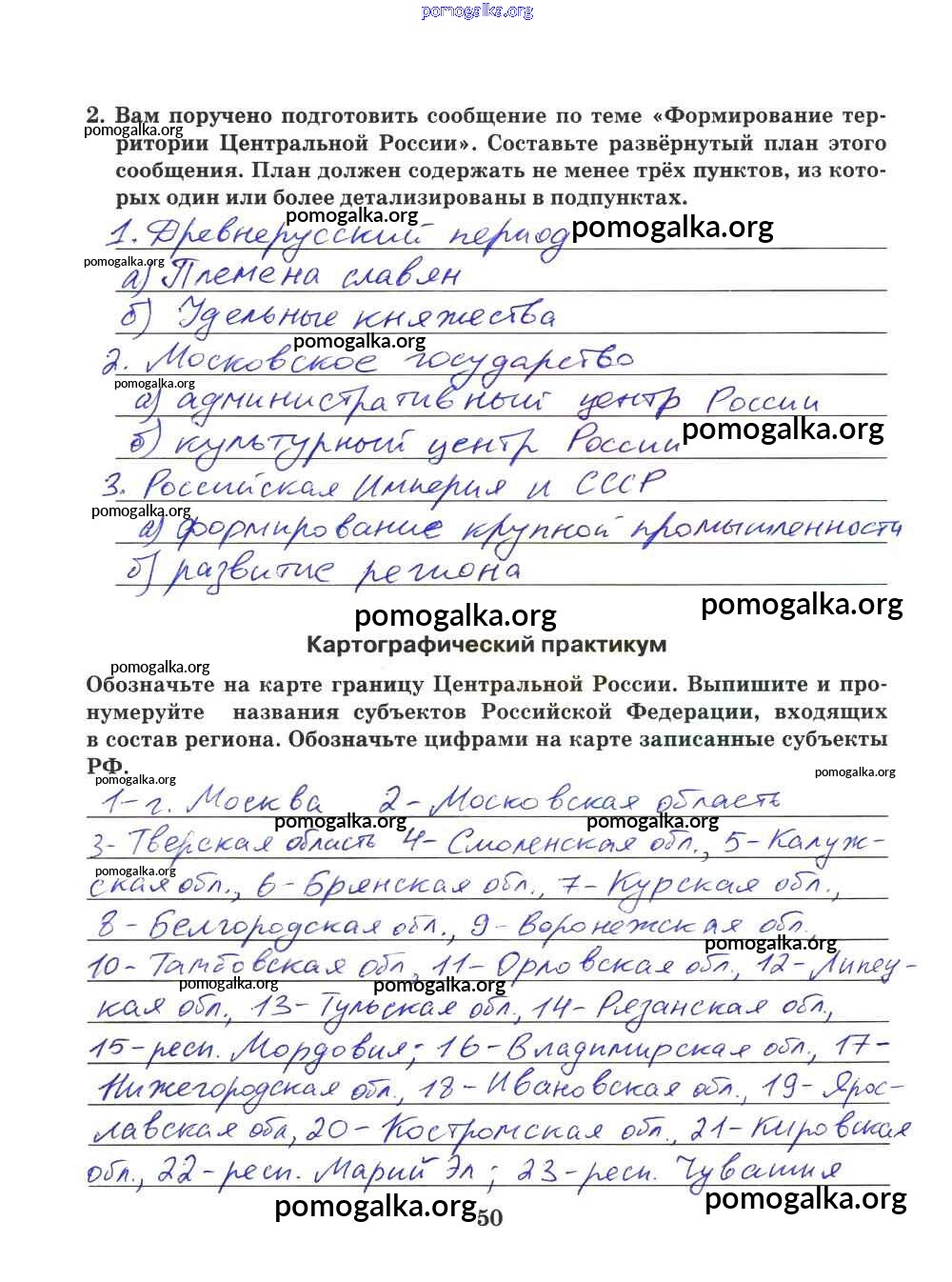 Готовые ответы - География 9 класс Рабочая тетрадь Домогацких Е.М. (к уч. Домогацких) - часть 2. страница 50