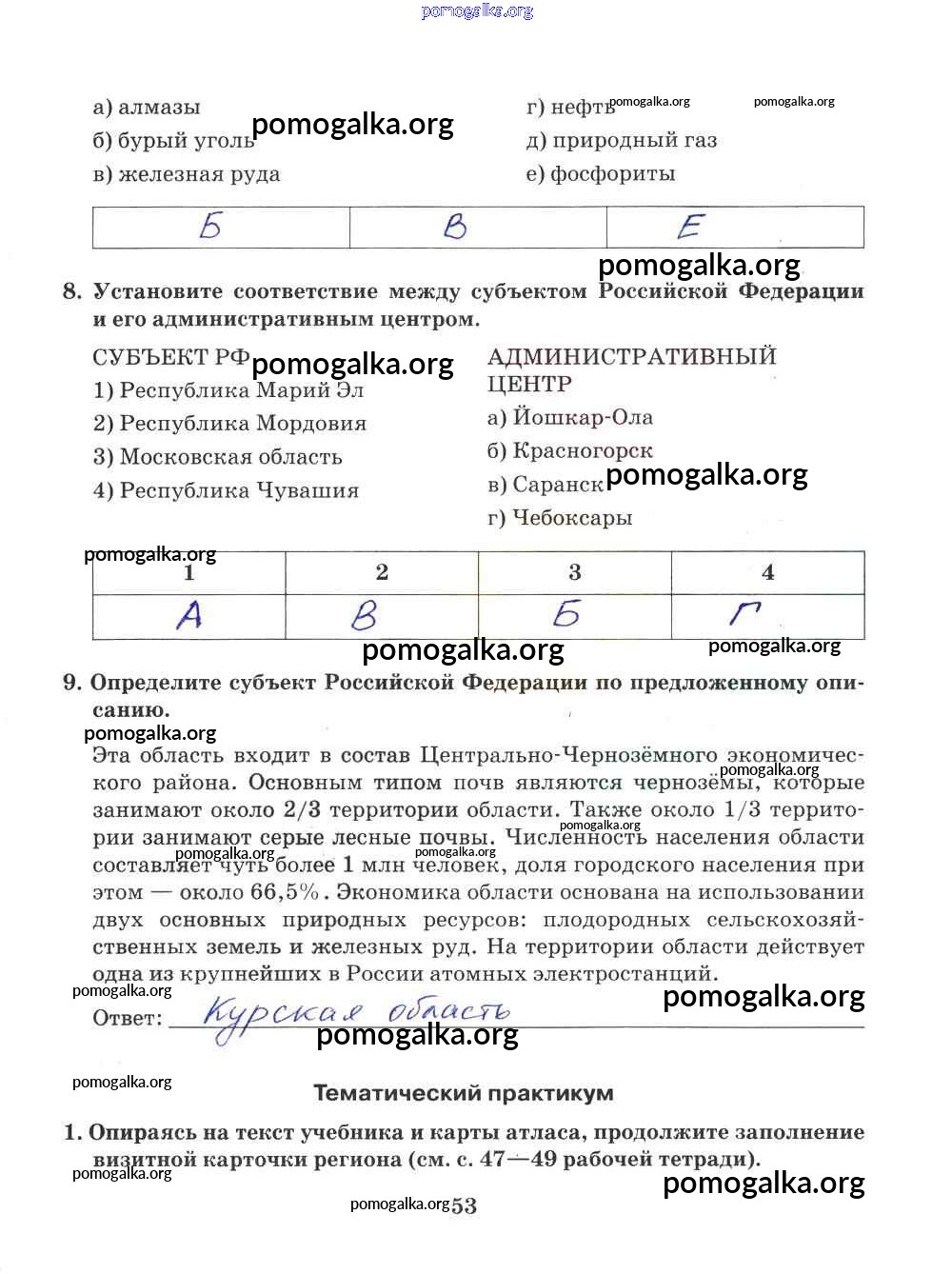 Готовые ответы - География 9 класс Рабочая тетрадь Домогацких Е.М. (к уч. Домогацких) - часть 2. страница 53