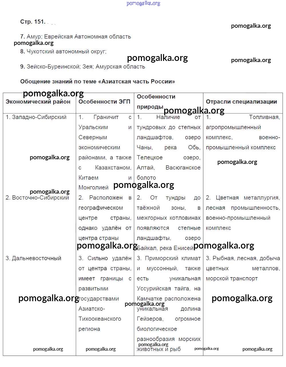 Готовые ответы - География России. Хозяйство и географические районы 9 класс рабочая тетрадь Ким Э.В. (к уч. Алексеева) - страница 151