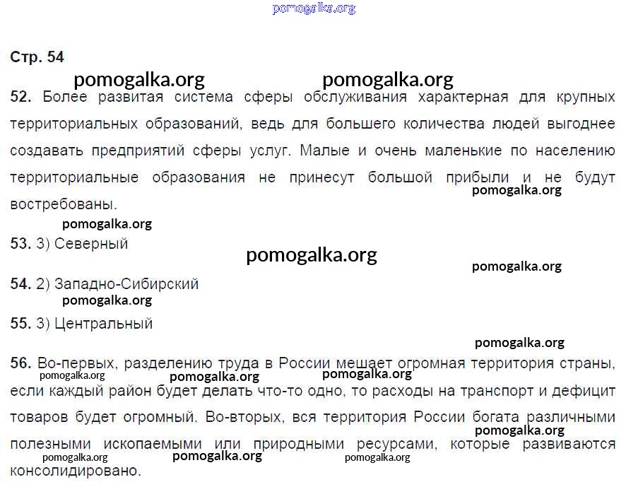 Готовые ответы - География России. Хозяйство и географические районы 9 класс рабочая тетрадь Ким Э.В. (к уч. Алексеева) - страница 54