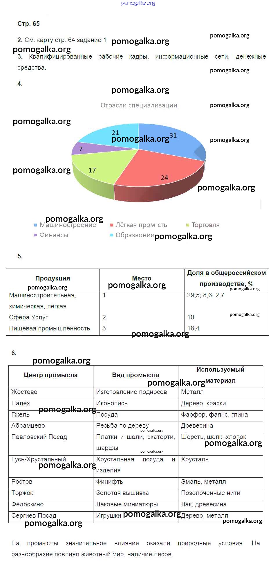 Готовые ответы - География России. Хозяйство и географические районы 9 класс рабочая тетрадь Ким Э.В. (к уч. Алексеева) - страница 65
