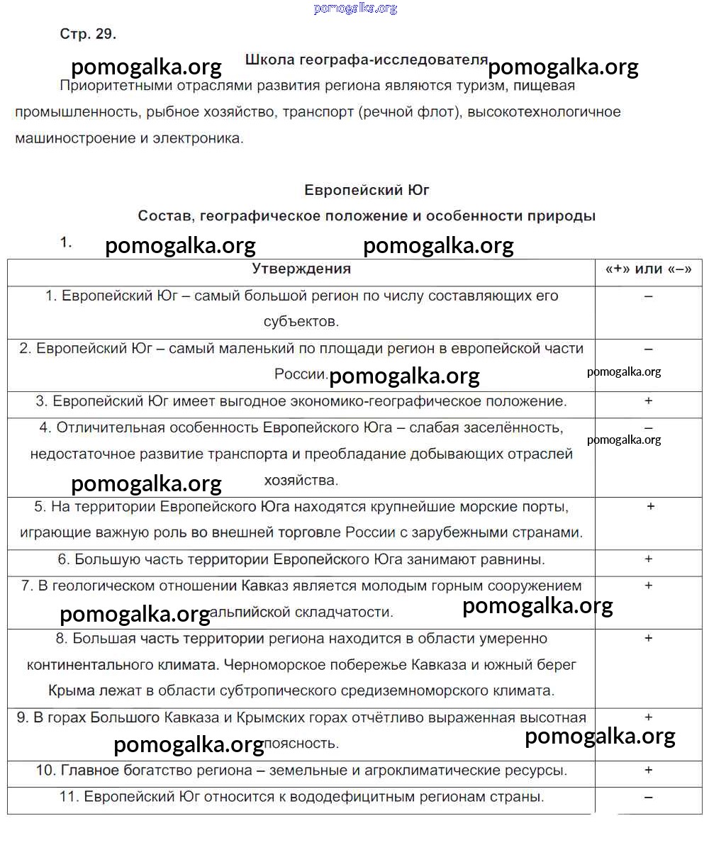 Готовые ответы - География 9 класс рабочая тетрадь Таможняя Е.А. - часть 2. страница 29