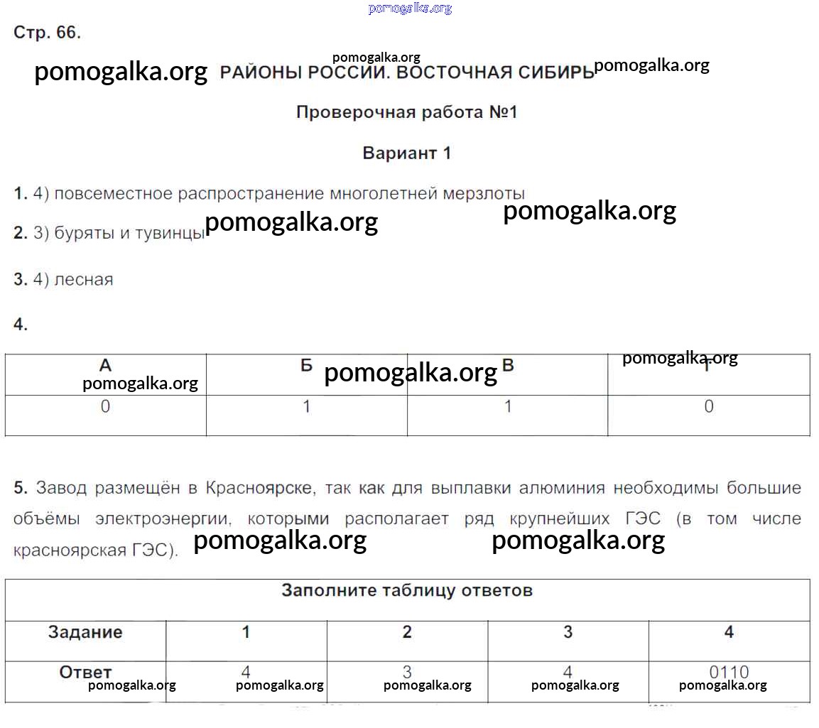 Районы России. Восточная Сибирь. Проверочная работа №1-2