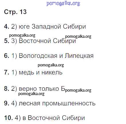 Районы России. Западная Сибирь. Проверочная работа №1-2