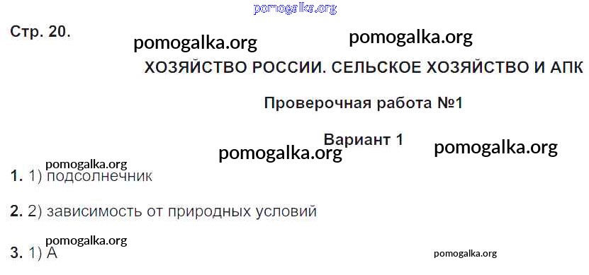 Хозяйство России. Сельское хозяйство. Проверочная работа №1-2