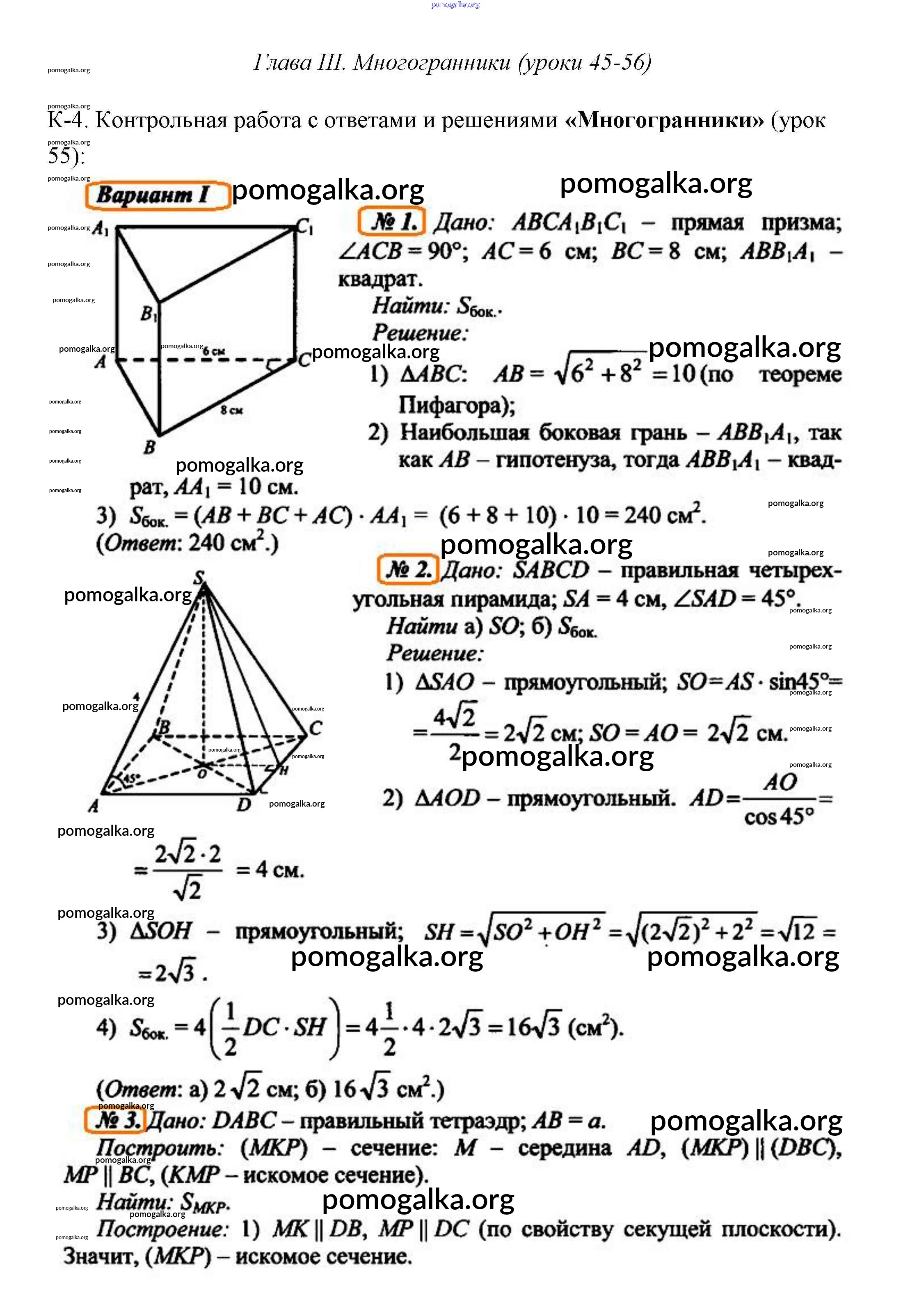 Готовые ответы - Геометрия 10 класс поурочные разработки Крупина (к Атанасяну) - уровень 1 (вариант) контрольная работа 4 1