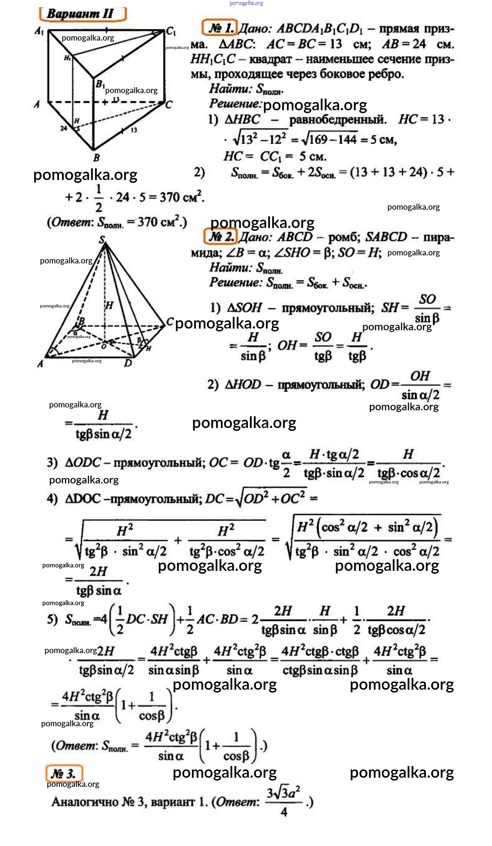 Готовые ответы - Геометрия 10 класс поурочные разработки Крупина (к Атанасяну) - уровень 3 (вариант) контрольная работа 4 2