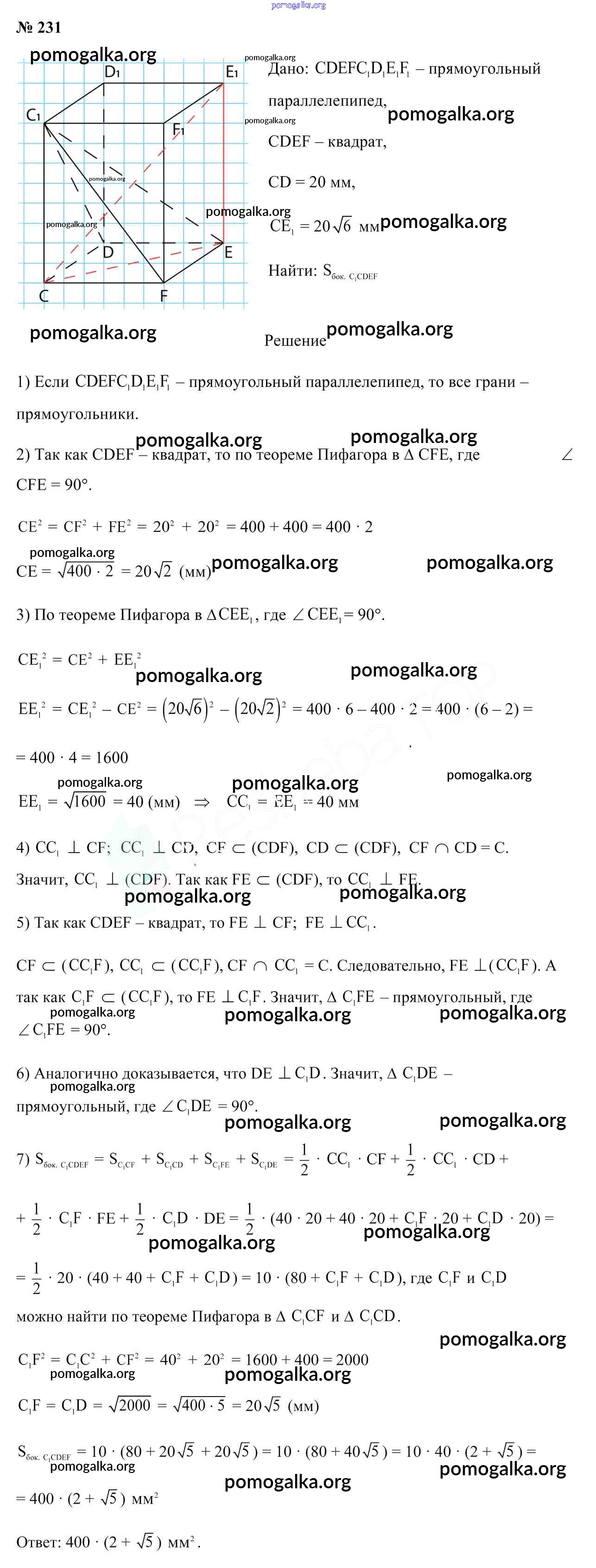 Готовые ответы - Геометрия 10 класс Латотин Л.А. - задача 231