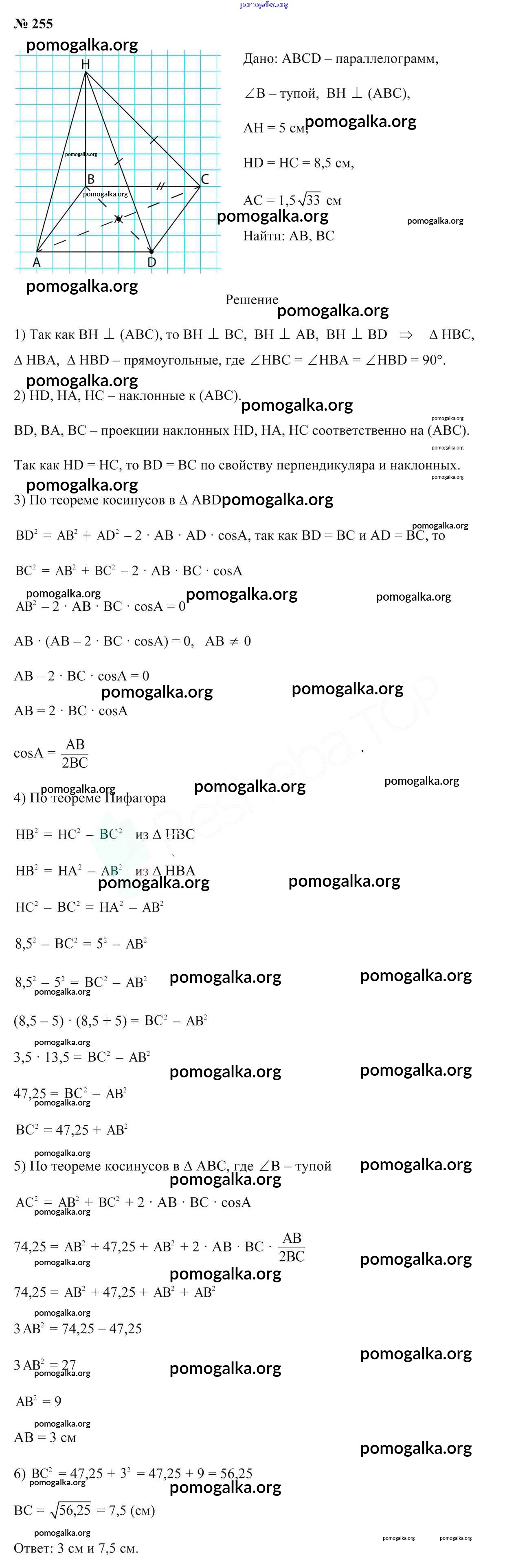 Готовые ответы - Геометрия 10 класс Латотин Л.А. - задача 255
