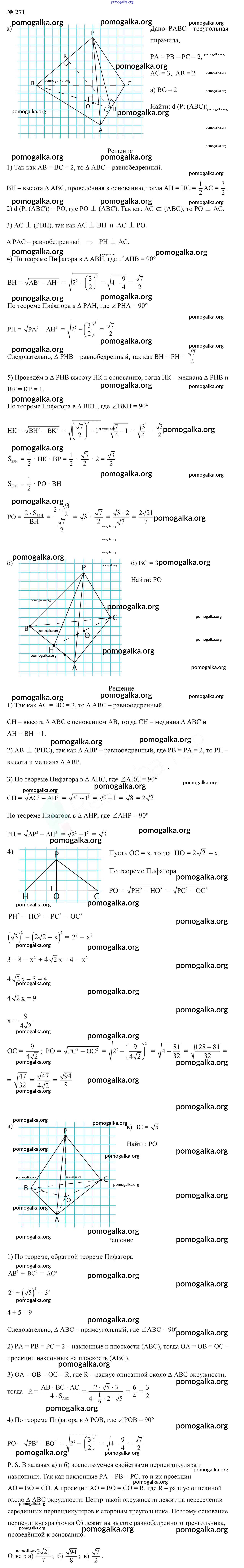 Готовые ответы - Геометрия 10 класс Латотин Л.А. - задача 271