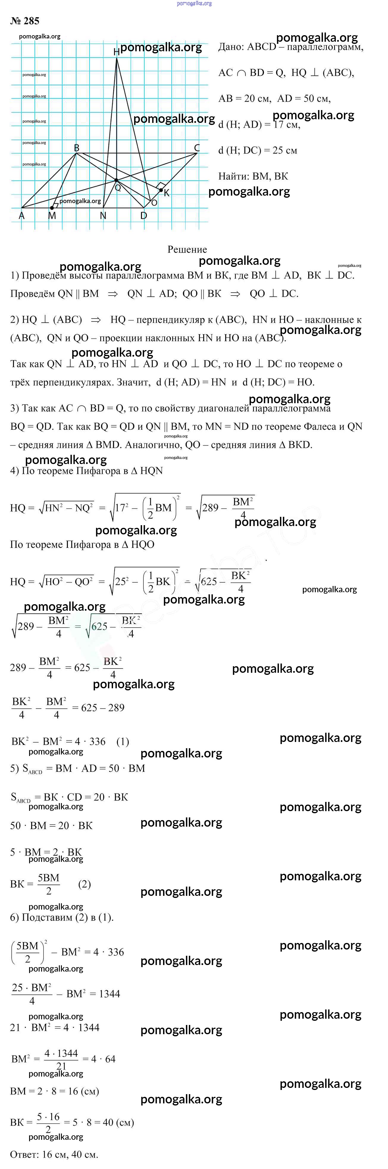 Готовые ответы - Геометрия 10 класс Латотин Л.А. - задача 285