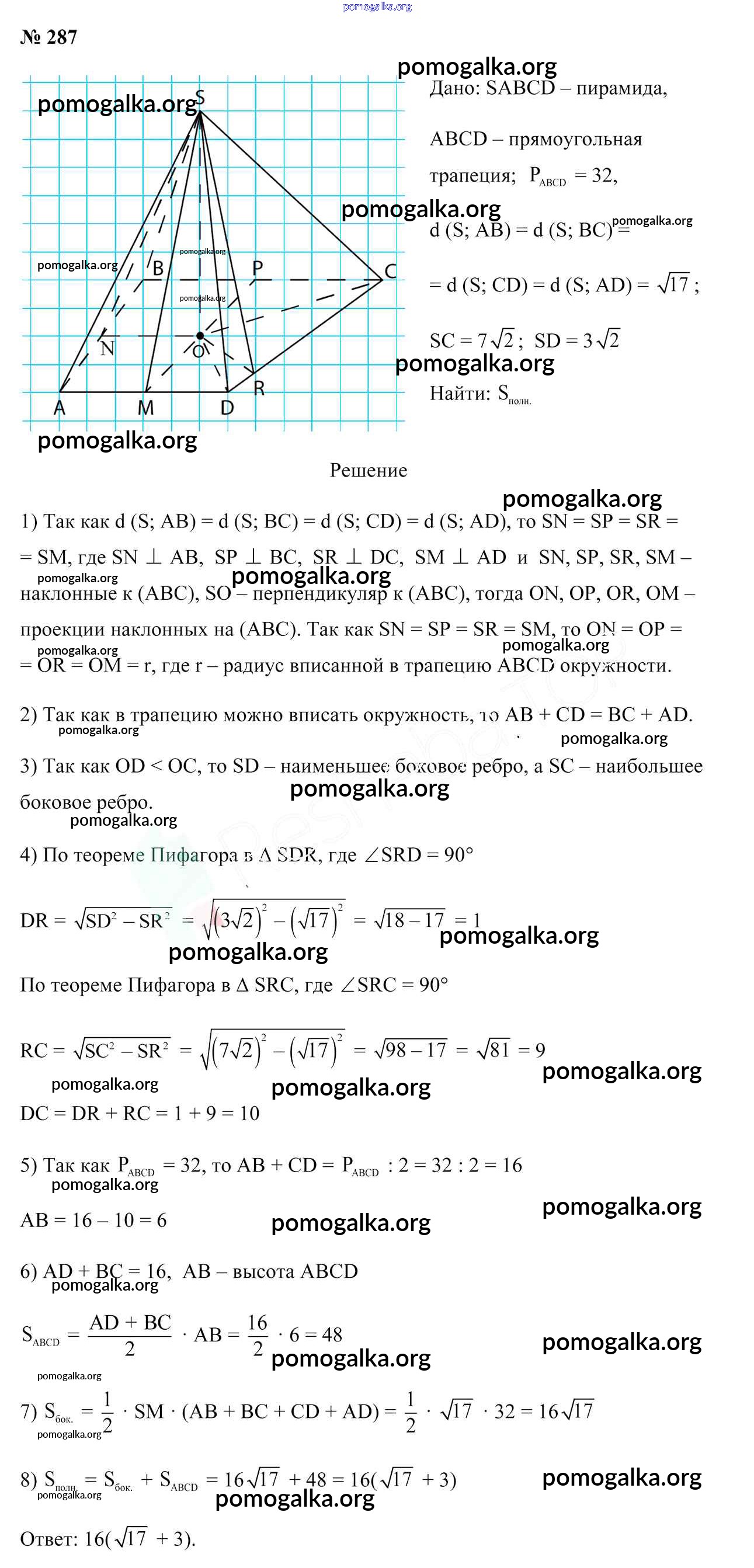 Готовые ответы - Геометрия 10 класс Латотин Л.А. - задача 287