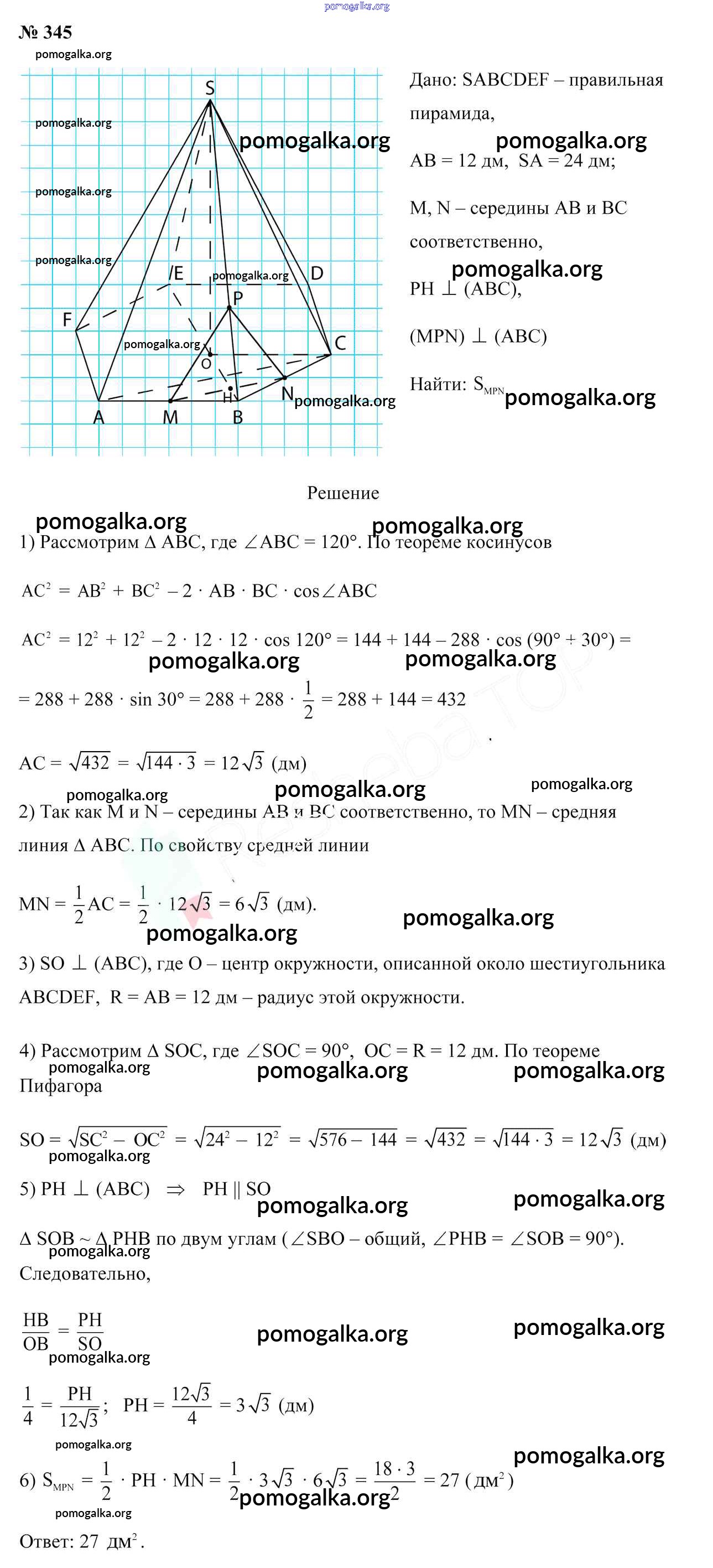 Готовые ответы - Геометрия 10 класс Латотин Л.А. - задача 345