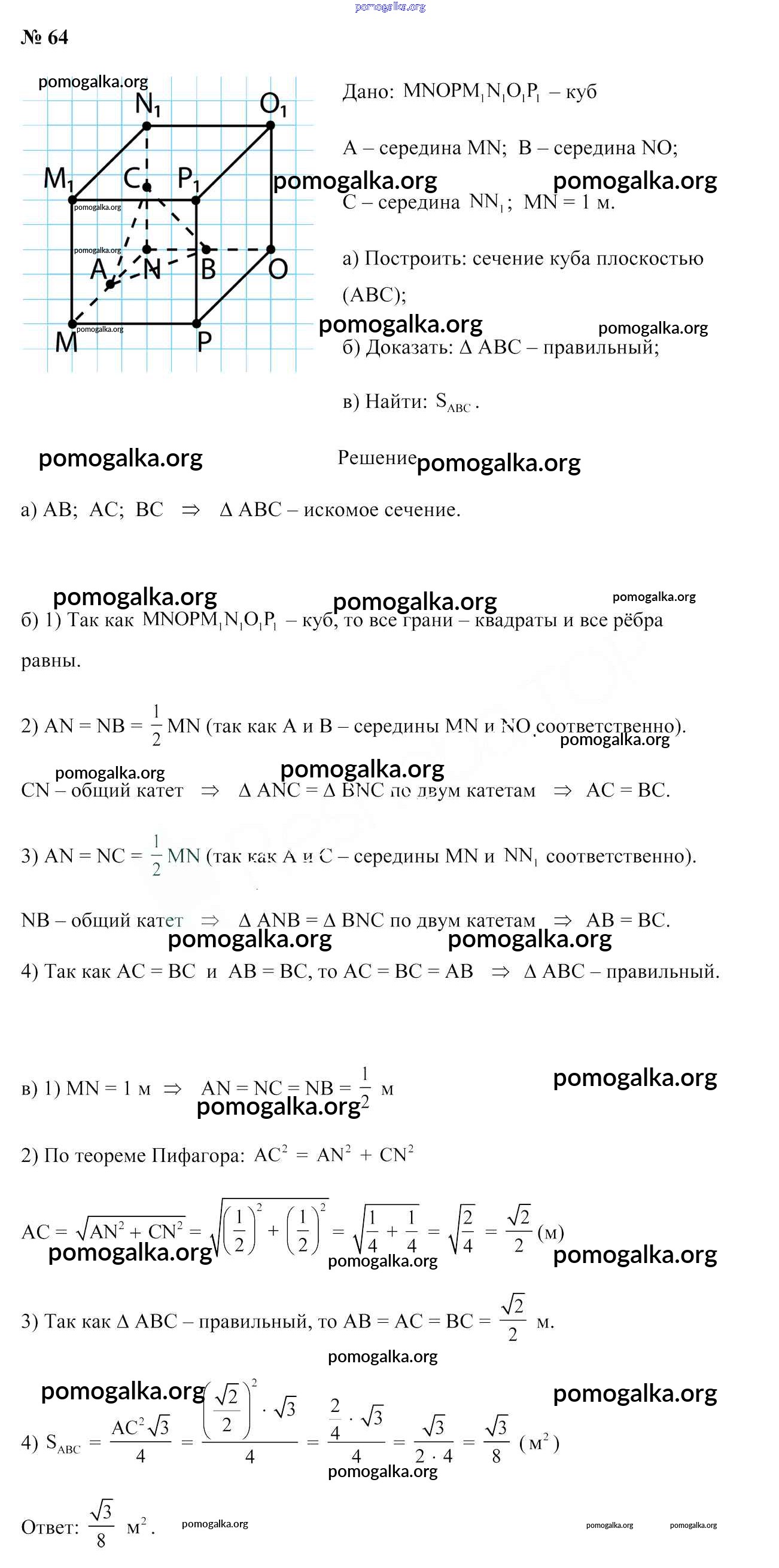 Готовые ответы - Геометрия 10 класс Латотин Л.А. - задача 64