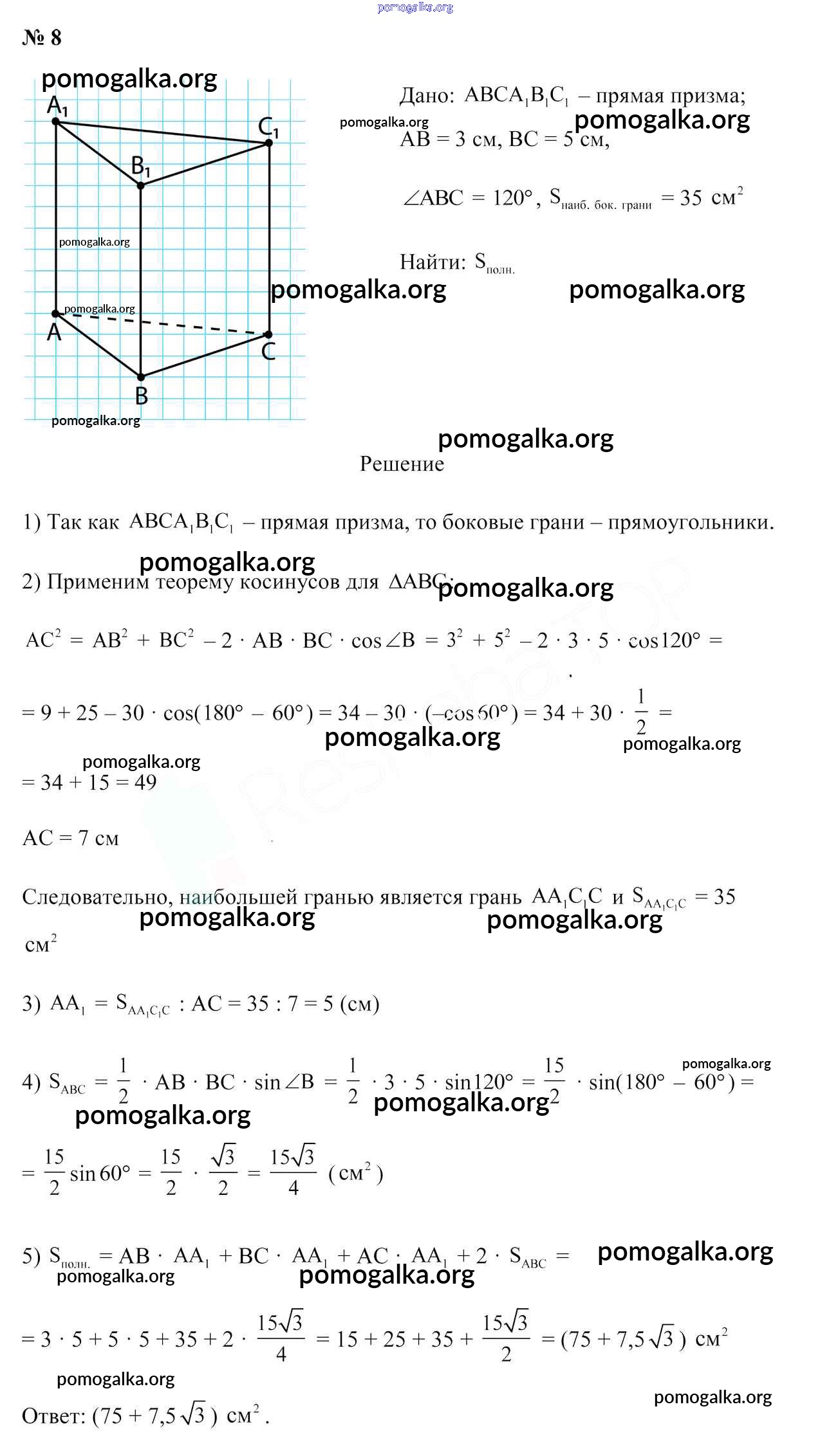 Готовые ответы - Геометрия 10 класс Латотин Л.А. - задача 8
