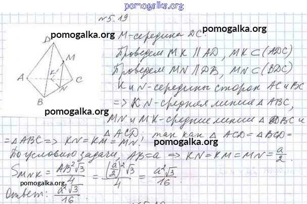 Готовые ответы - Геометрия 10 класс Мерзляк А.Г. - §5 5.19