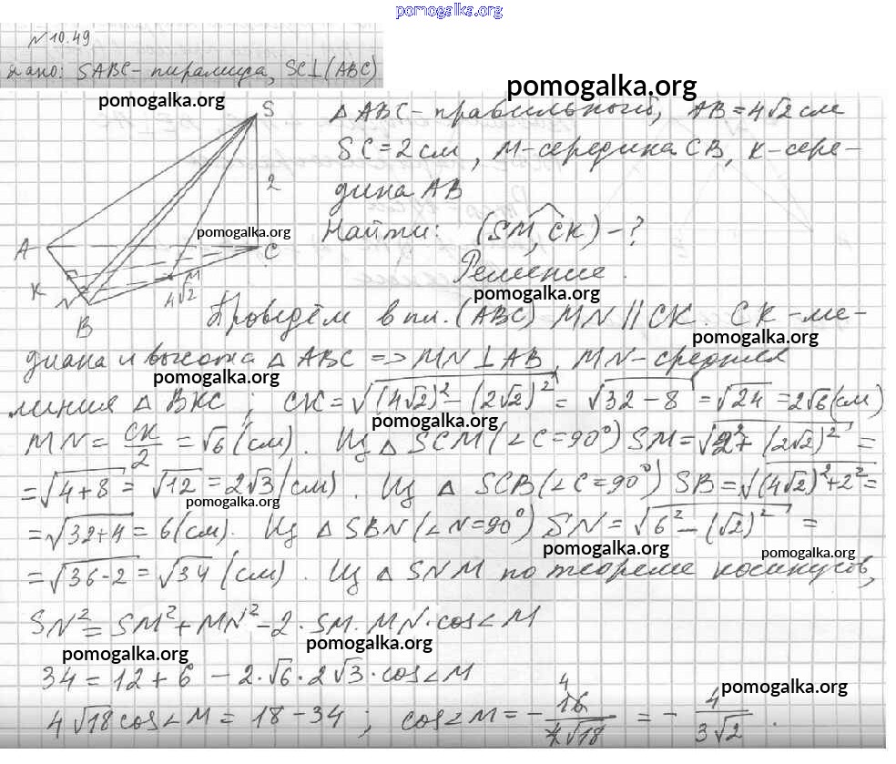 Готовые ответы - Геометрия 10 класс Мерзляк А.Г. - §10 10.49