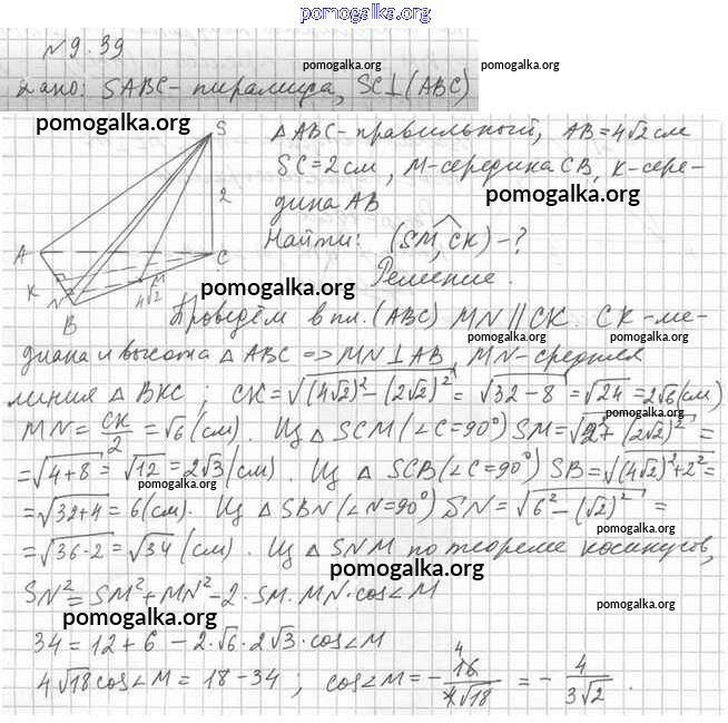 Готовые ответы - Геометрия 10 класс Мерзляк А.Г. - §9 9.39