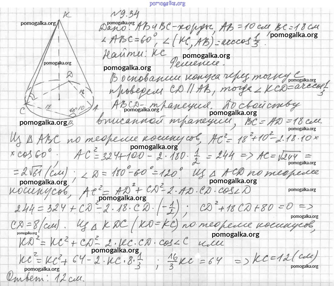 Готовые ответы - Геометрия 11 класс Мерзляк А.Г. - §9 9.34