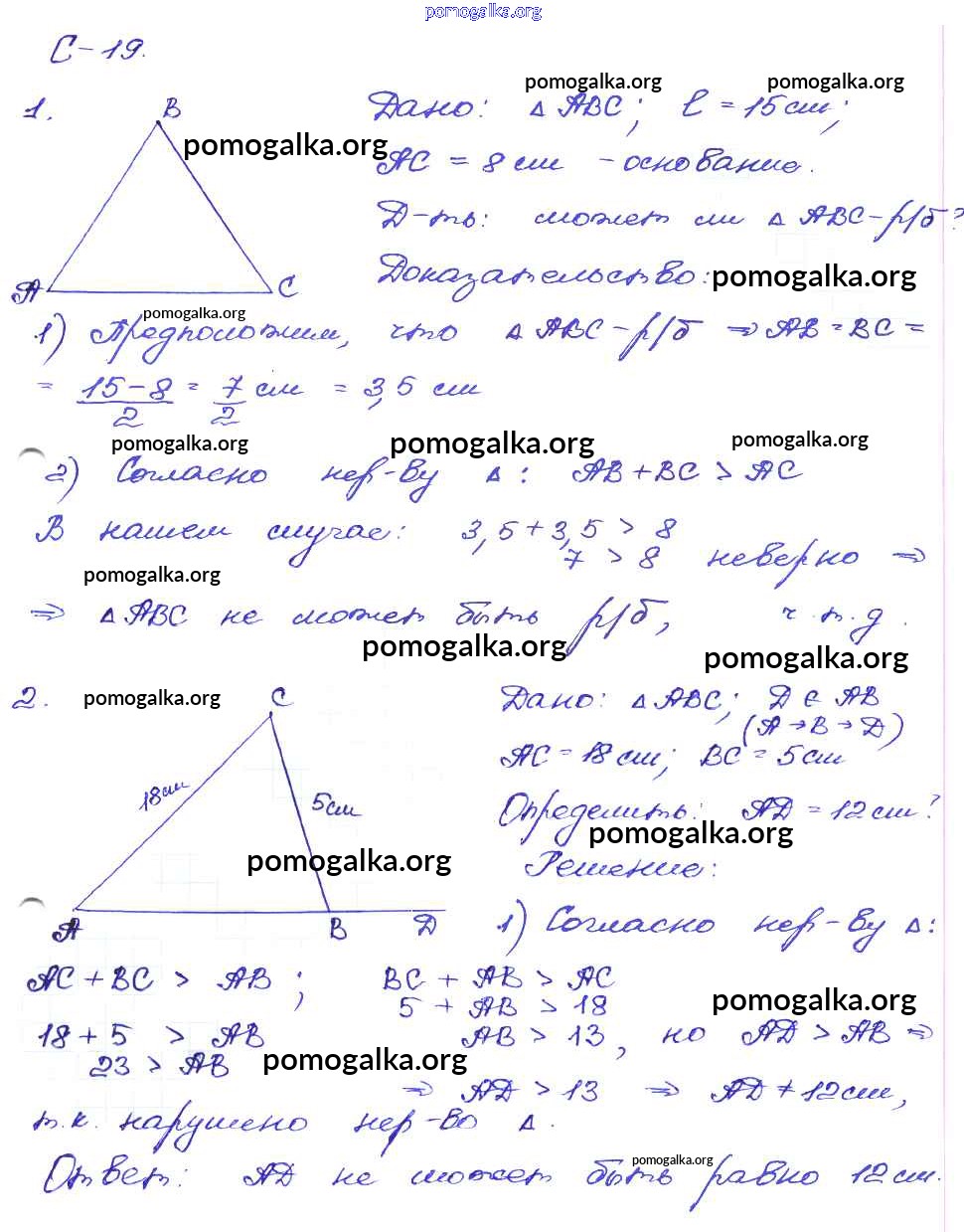 Готовые ответы - Геометрия 7 класс Дидактические материалы Зив Б.Г. - ср-19. вариант самостоятельная работа 2