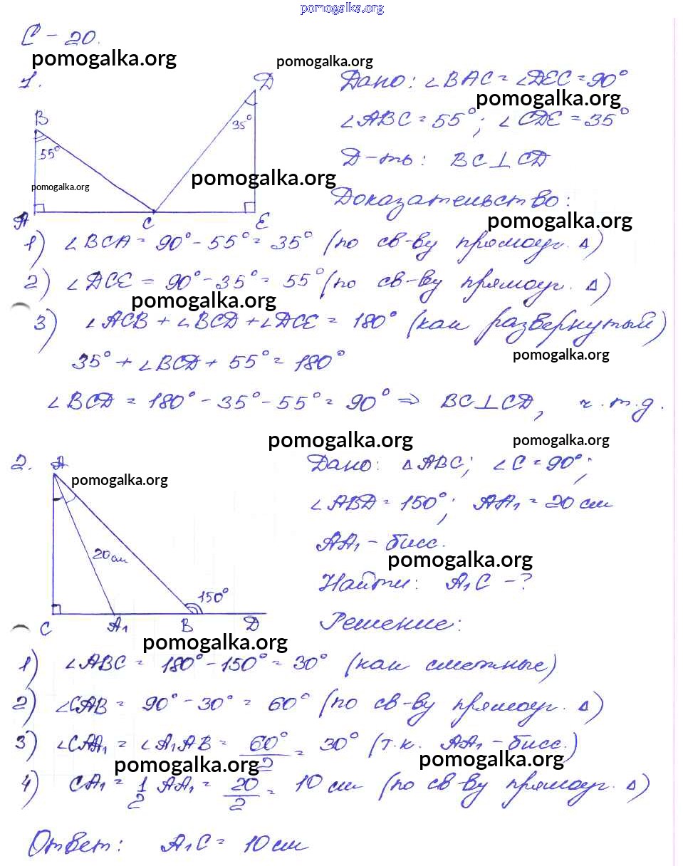Готовые ответы - Геометрия 7 класс Дидактические материалы Зив Б.Г. - ср-20. вариант самостоятельная работа 3