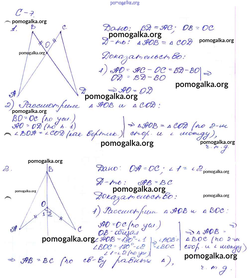 Готовые ответы - Геометрия 7 класс Дидактические материалы Зив Б.Г. - ср-7. вариант самостоятельная работа 1
