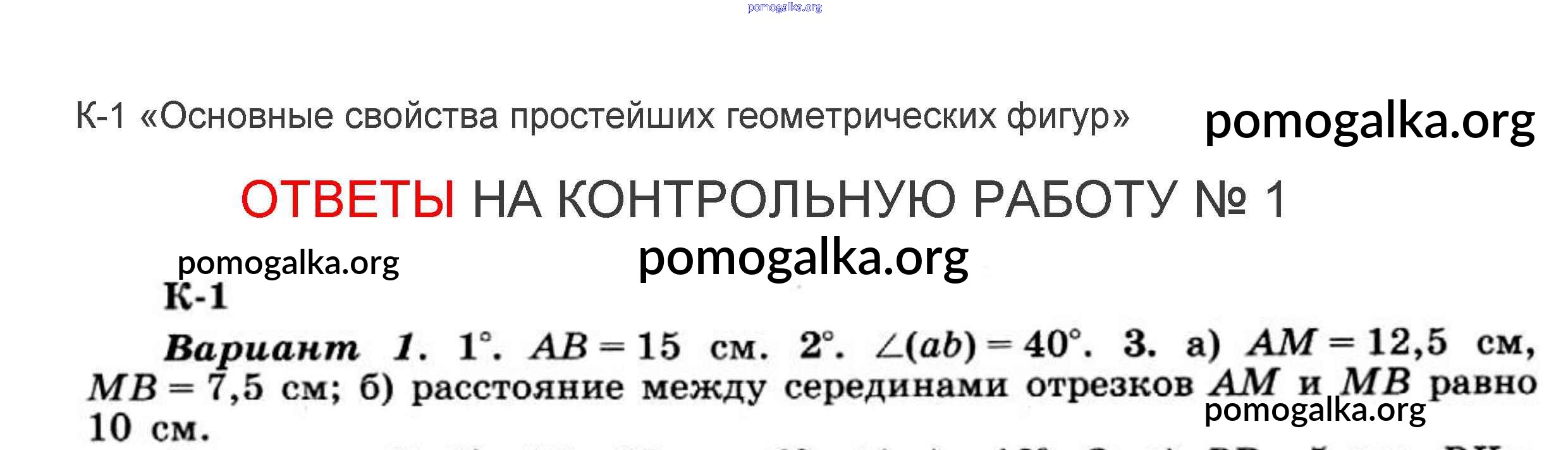 Готовые ответы - Геометрия 7 класс дидактические материалы Гусев - контрольная работа 1 1