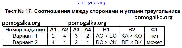 Готовые ответы - Геометрия 7 класс КИМ Гаврилова Н.Ф. - тест 17